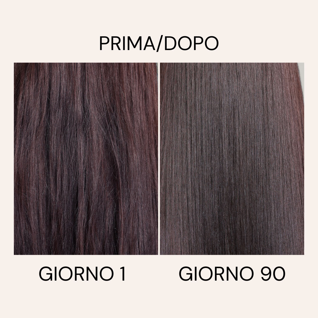 Già dal primo mese di trattamento si osservano risultati significativi in termini di bellezza, lucentezza e resistenza. Dopo 3 mesi di trattamento i risultati sono ancora più significativi. Questa è quindi logicamente la durata minima di utilizzo che consigliamo.